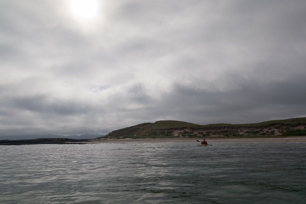 The morning was dull with thick low cloud. We planned to take the south going tide down the west coast of Islay and either camp at Lossit Bay or carry on round the Rhinns of Islay (at slack water) and into Loch Indaal, if there was too much surf to risk landing at Lossit.